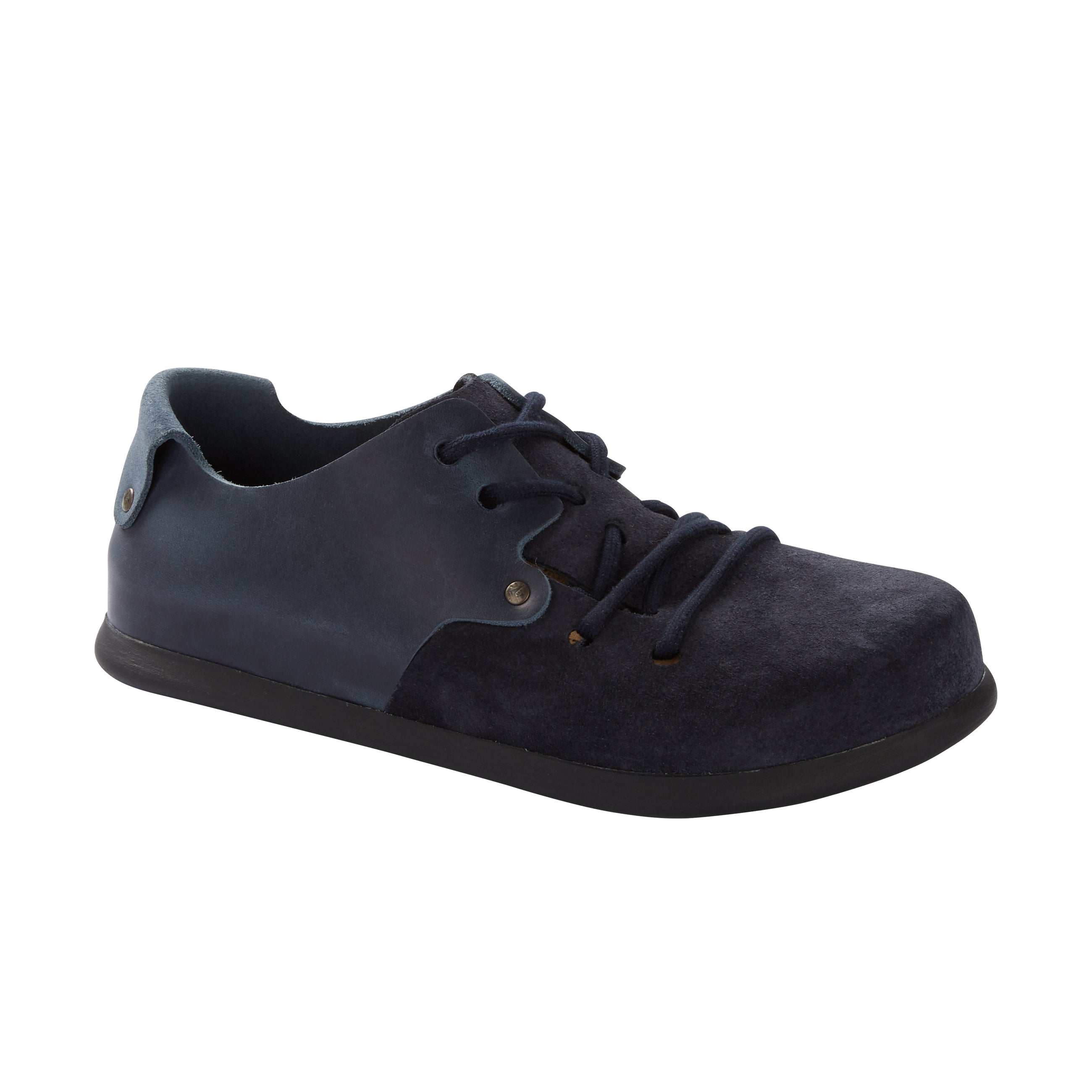 Simple yet sophisticated! The Birkenstock Montana is a fully enclosed shoe. based on the classic Birkenstock footbed. This style features absolutely no stitching thanks to its special construction. The two upper sections are held together by two rivets and the novel lacing pattern. Popular for those that value uniqueness whether it's for work or leisure.